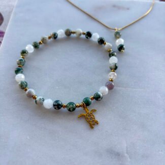 Agat działa uspokajająco i ugruntowująco, pomagając w stabilizacji emocji oraz przywracaniu wewnętrznej równowagi. Wzmacnia koncentrację i sprzyja większej jasności myśli, jednocześnie zapewniając ochronę energetyczną i poczucie bezpieczeństwa.
