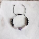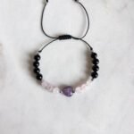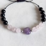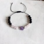 Oferta dotyczy 1 sztuki bransoletki z czarnym turmalinem, hematytem srebrnym lub złotym, ametystem sercem i kwarcem różowy.