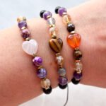 Złote lub srebrne hematyty są dobierane według dostępności, bransoletka ma regulowane zapięcie makramowe.