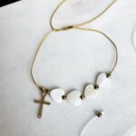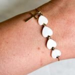 Bransoletka z kamieni naturalnych, masa perłowa serduszka oraz złote lub srebrne hematyty do wyboru.Jeśli chcesz opcję bez zawieszki napisz wiadomość do zakupu.