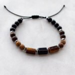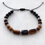 Minimalistyczna i stylowa bransoletka wykonana z naturalnych kamieni nawleczonych na mocny rzemyk. Idealna zarówno dla kobiet, jak i mężczyzn – pasuje do codziennych stylizacji, jak i tych bardziej wyrazistych.