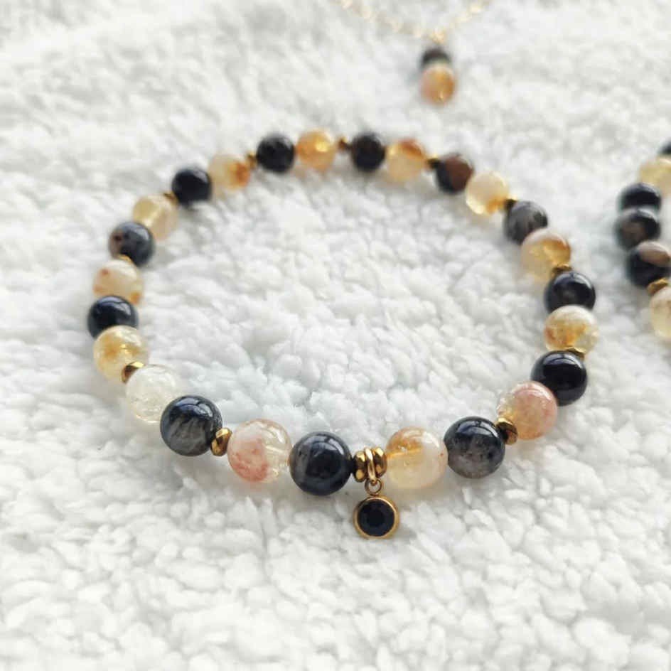 Bransoletka z Kamieni Naturalnych i hematytów złotych.