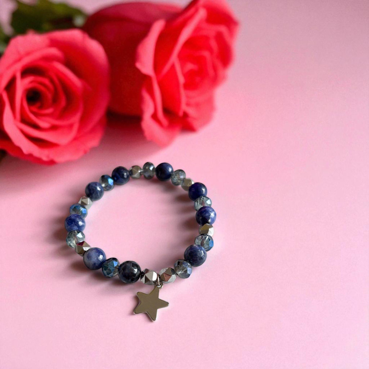 Bransoletka z kamieni naturalnych na gumce Hematyt i sodolit