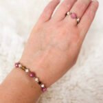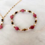 Bransoletka z naturalnych kamieni – na elastycznej gumce, oferta dotyczy samej bransoletki bez innych części zestawu.
