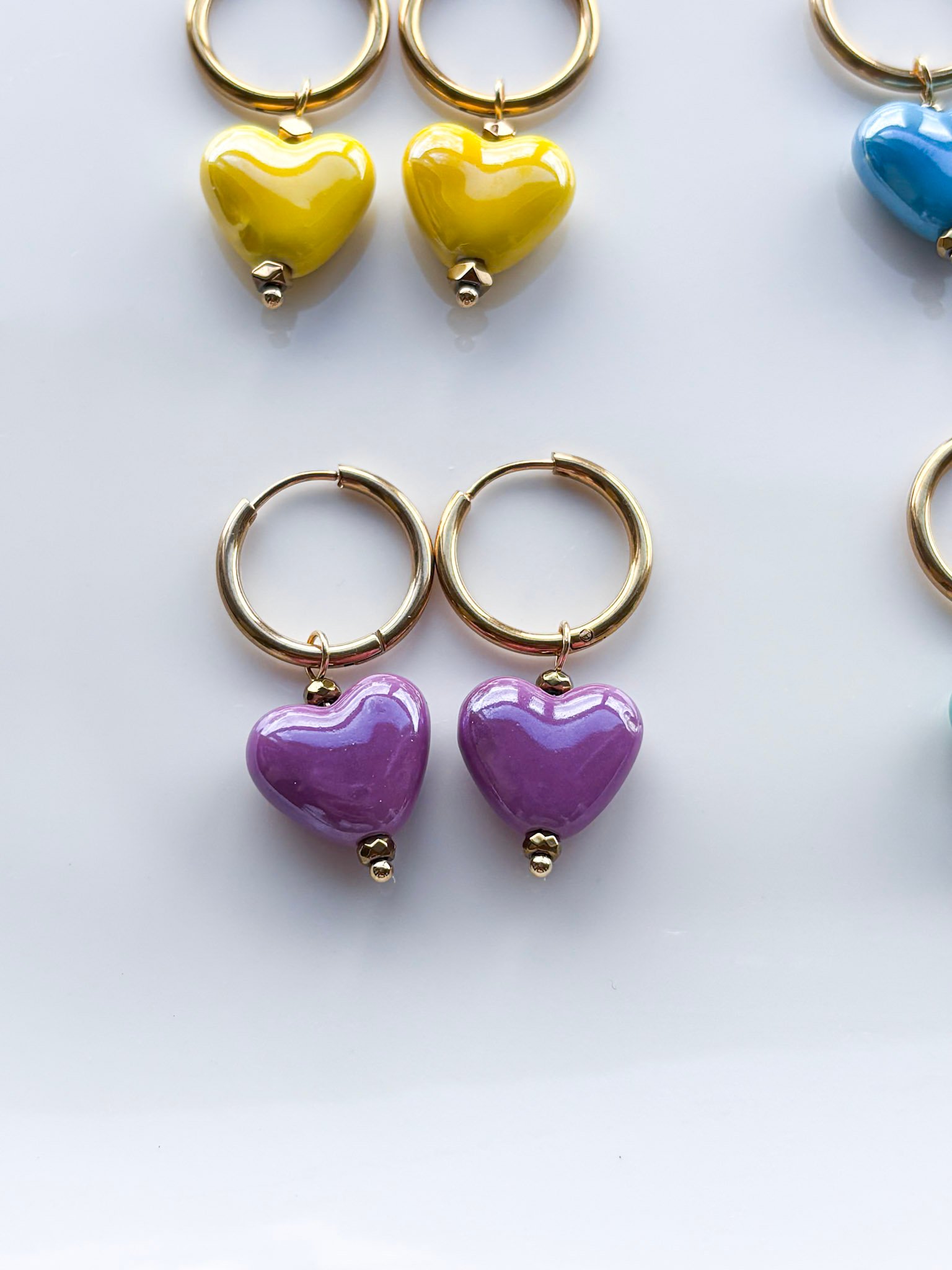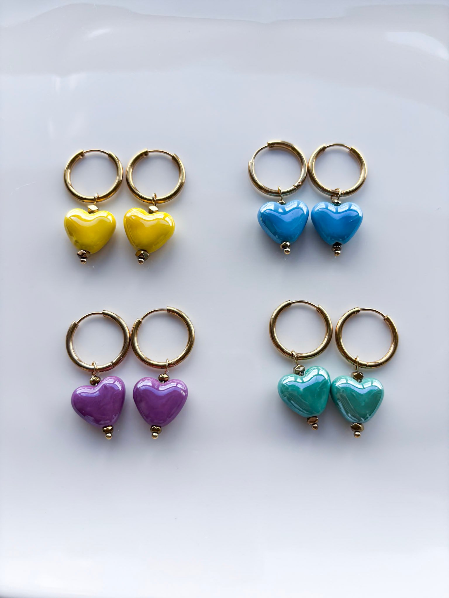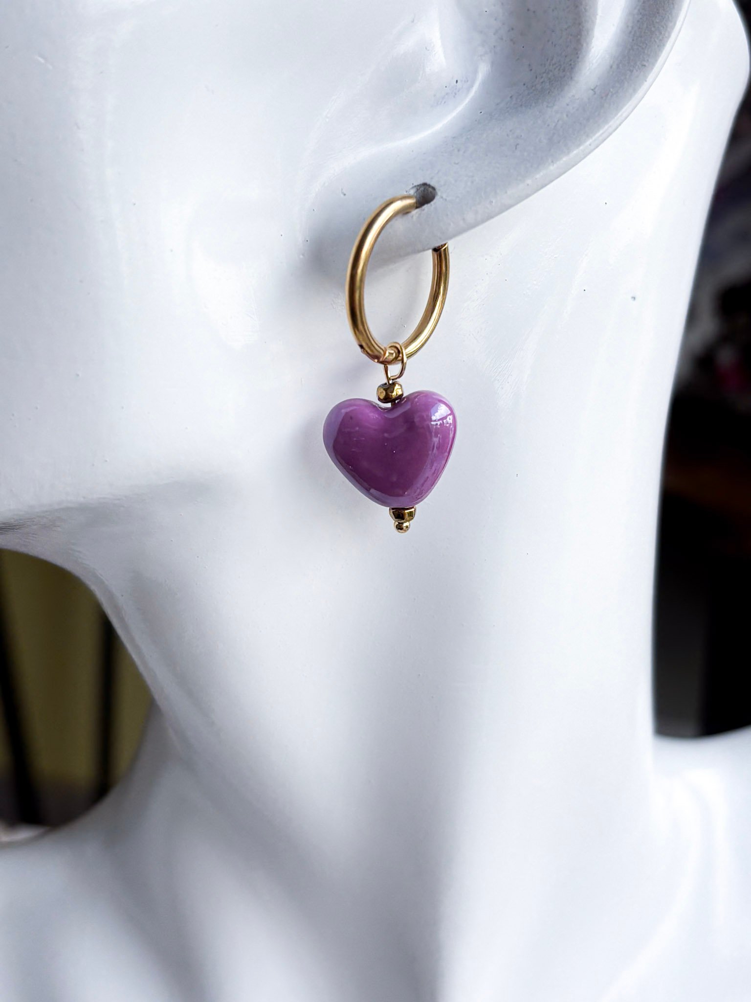 Kolczyki z zawieszkami ceramicznymi i Hematytami złotymi lub srebrnymi