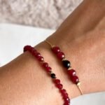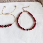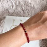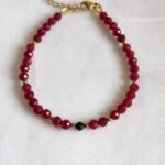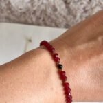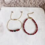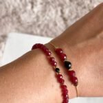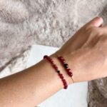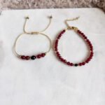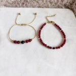 Oferta dotyczy bransoletki z drobnymi kamieniami rubinu, druga bransoletka – na rzemyku nie wchodzi w skład zestawu.