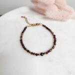 ✨ Bransoletka wykonana z drobnych, 3-4 mm granatów, osadzona na stali szlachetnej. To subtelna biżuteria, która emanuje pewnością siebie i wewnętrznym ciepłem. Delikatna, ale z charakterem!