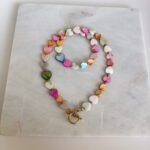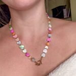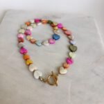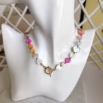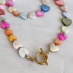 Naszyjnik z masy perłowej (serca) i hematytów, robiony ręcznie, zapinany z przodu lub z tyłu, zapięcie bez regulacji