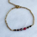 Unikalna bransoletka wykonana z kamieni naturalnych. Jeśli któregoś z kamieni akurat brakuje, może zostać zastąpiony tym samym minerałem, jednak o nieco innym odcieniu lub kształcie – każdy egzemplarz jest więc jedyny w swoim rodzaju. Warto mieć to na uwadze, bo natura lubi zaskakiwać 🌿