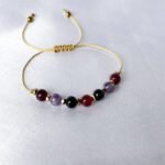 Unikalna bransoletka wykonana z kamieni naturalnych. Jeśli któregoś z kamieni akurat brakuje, może zostać zastąpiony tym samym minerałem, jednak o nieco innym odcieniu lub kształcie – każdy egzemplarz jest więc jedyny w swoim rodzaju. Warto mieć to na uwadze, bo natura lubi zaskakiwać 🌿