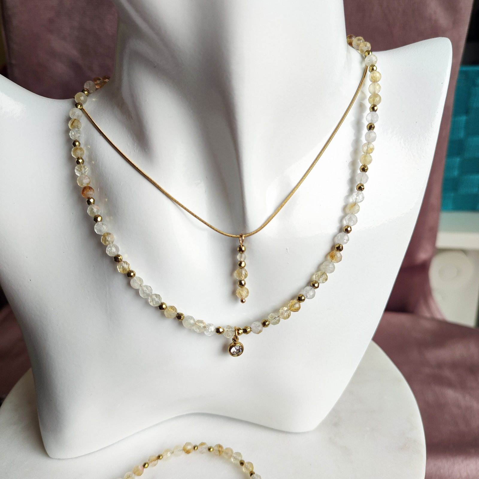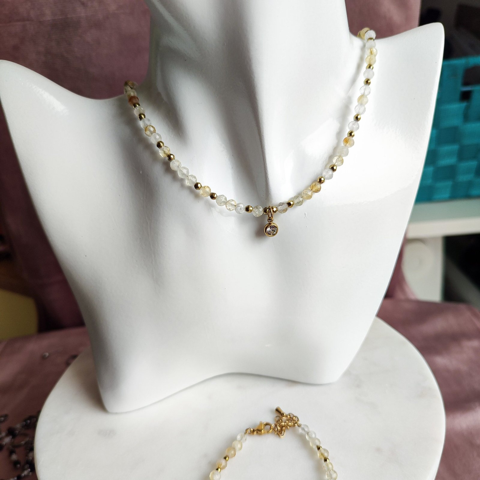 Delikatny, a jednocześnie pełen mocy – ten naszyjnik to połączenie cytrynu i hematytu w drobnych kamieniach o średnicy 3–4 mm. Idealny jako subtelny akcent z pozytywną energią na co dzień.