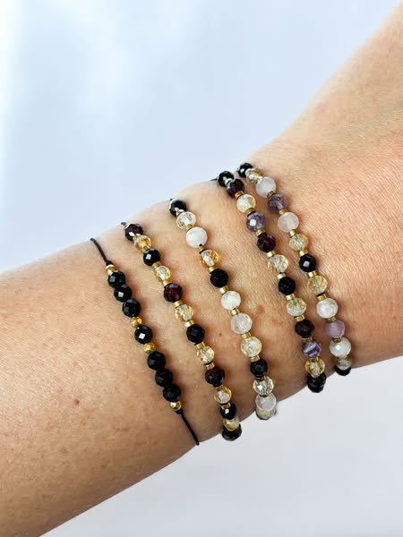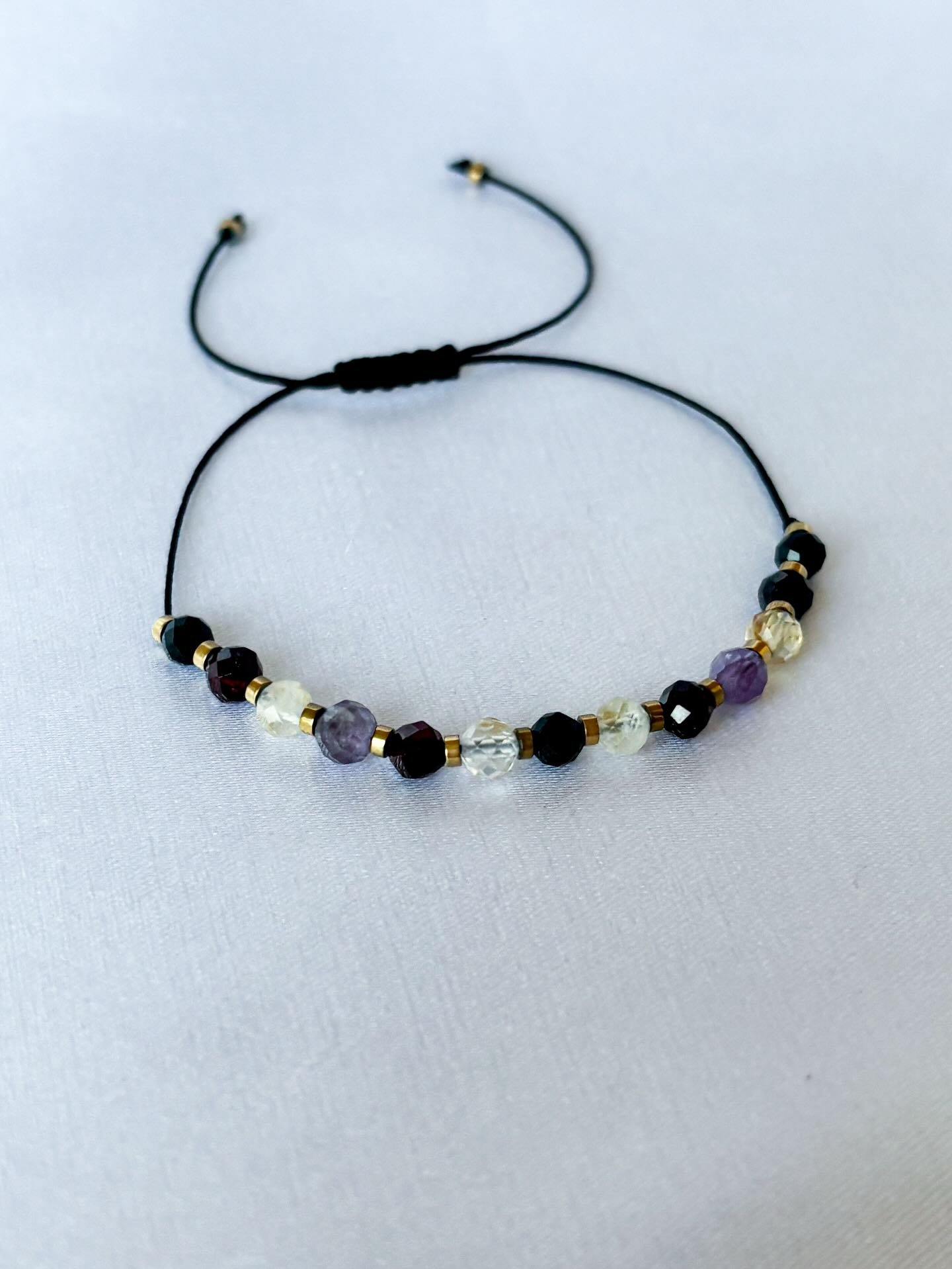 Unikalna bransoletka wykonana z kamieni naturalnych. Jeśli któregoś z kamieni akurat brakuje, może zostać zastąpiony tym samym minerałem, jednak o nieco innym odcieniu lub kształcie – każdy egzemplarz jest więc jedyny w swoim rodzaju.