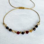 Unikalna bransoletka wykonana z kamieni naturalnych. Jeśli któregoś z kamieni akurat brakuje, może zostać zastąpiony tym samym minerałem, jednak o nieco innym odcieniu lub kształcie – każdy egzemplarz jest więc jedyny w swoim rodzaju.