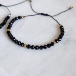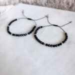 Turmalin czarny i Hematyt Bransoletka na rzemyku srebrne lub złote wykończenie