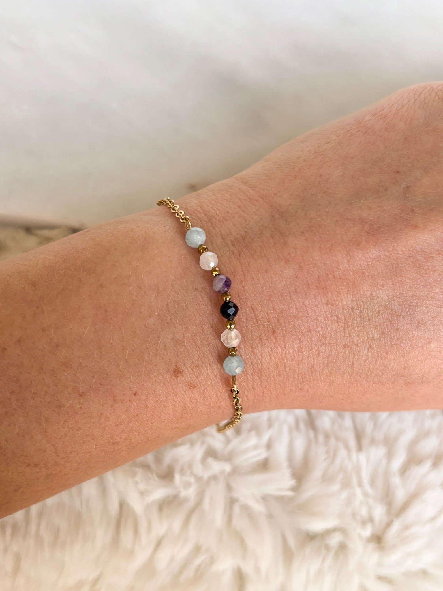 Bransoletka z kamieni naturalnych dla Wagi. Bransoletka na łańcuszku, ze stali szlachetnej.