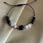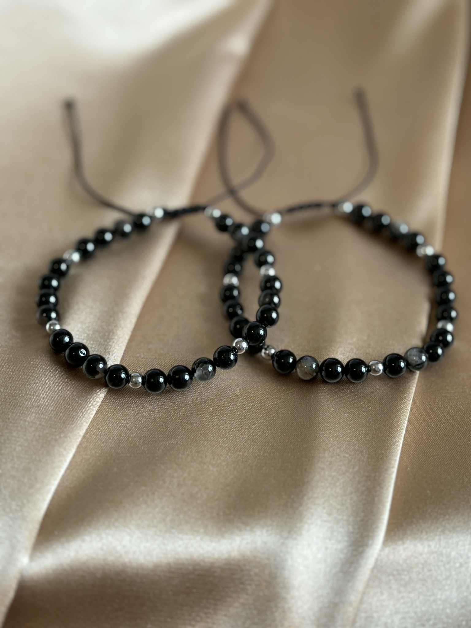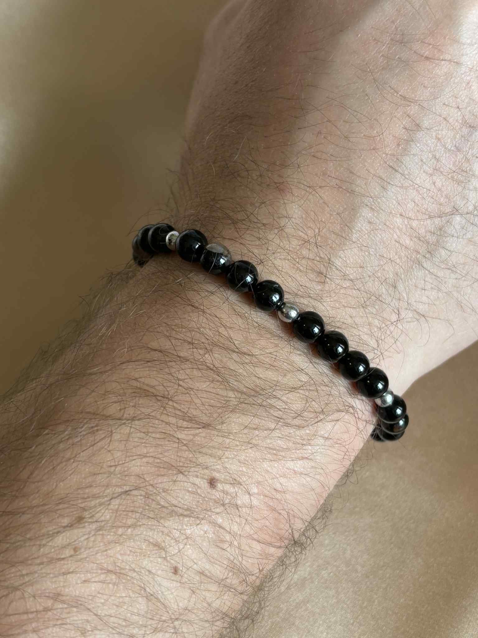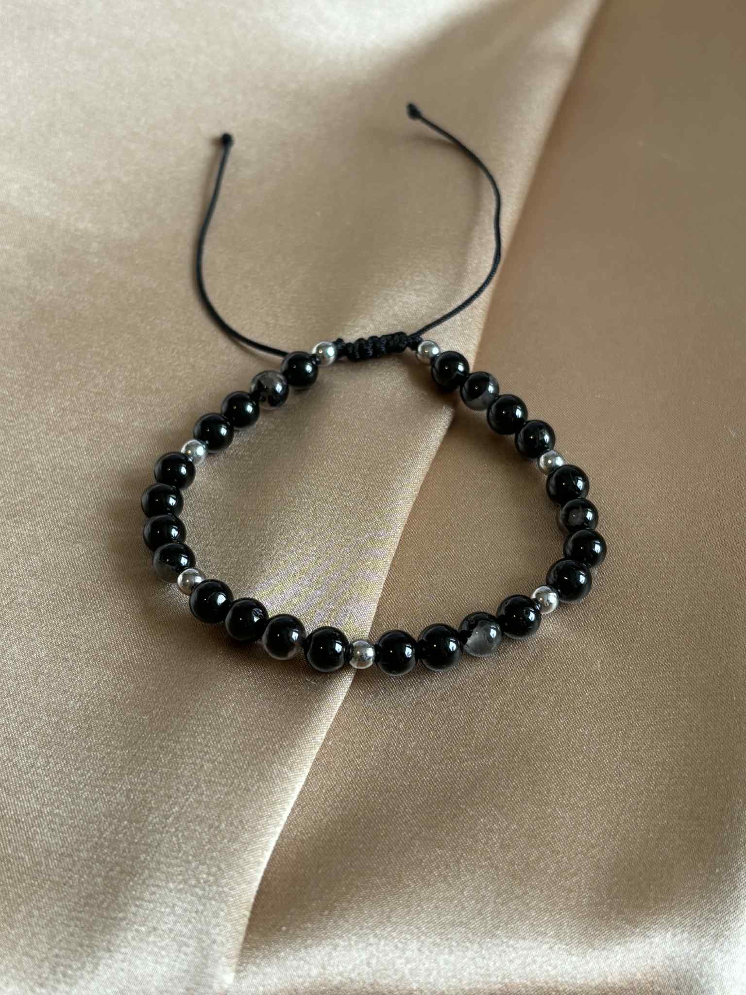 Oferta dotyczy 3 sztuk. Dwie klasyczne z czarnym turmalinem, dodatki złote lub srebrne hematyty (proszę wybrać) oraz jedna, damska z mniejszą ilością turmalinu, ale z dodatkami kwarcu różowego i serduszka ametystu.