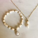 Bransoletka z kamieni na gumce oraz łańcuszek z zawieszką.